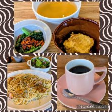 シェフの気まぐれパスタ(バターナッツかぼちゃのクリームパスタ) 4品のオプション無料(有機野菜の前菜2品、有機野菜スープ、有機野菜サラダ) コーヒー バターナッツかぼちゃがねっとり柔らかくてクリームソースと合います 前菜のさつまいもの天ぷらもサクサクに揚がっていて美味しかった
