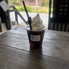 *豆乳のコーヒーフロート お豆腐の美味しいお店のスィーツです。 お店の敷地内に湧水を汲める所があり、美味しいお水も貰いました。 このお店の寄せ豆腐、めっちゃ美味しかったです。