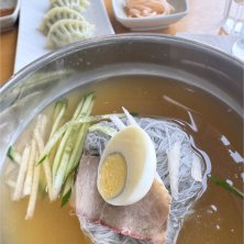 冷麺と餃子 つゆが美味しくてついつい飲んでしまった! 餃子は柔らかくてこれ、むしたのかなぁ、、美味しゅうございました!