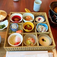 旅行飯!ホテルの朝食です。 カラダにやさしい9種の小鉢和膳 とても美味しい朝食だった。