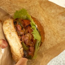 今日は焼物体験でお昼バタバタで、ホンマはばしゃ山村で鶏飯と思ったけど時間なかったので、隣のお店でハンバーガー買って、陶芸の所行くまでにムシャァした めっちゃ肉で美味しいでした!