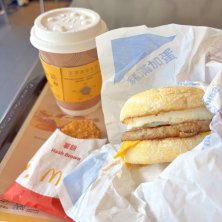 ◆ソーセージエッグマフィン、ハッシュドポテト、ホットコーヒー 122NT$(約610) 日本と同じ味でした。ホットコーヒーが1.5倍ぐらい大きく軽めな感じです。