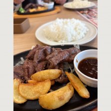 仕事関係の打ち合わせを兼ねて、ランチはミスジカットステーキ(150g)。