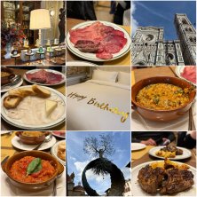 イタリアごはん♡(フィレンツェ編) 特にする事が無かったので、旦那はマッサージ、私は1人でぷらっと街歩きしてきました♡ サンタマリアノヴェッラ、世界最古の薬局…というか香水等を扱ってるお店、支店はありますが、本店はミュージアム的な感じ。 夜はイタリア在住でお喋りも達者な方と合流。 前日行った街の影響ですっかり🐗脳になり専門店へ♡ 猪サラミ、豚のラード、賄い料理のリボリータ(野菜豆の煮込み)、パッパ(パンのトマト煮)、メインはお目当ての猪肉ステーキ♡ 現地時間17時に旦那の誕生日♡