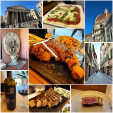 イタリア10日目♡(フィレンツェ編) ローマでは朝から真実の口とパンテオンへ。 これで思い残すことは無し!次の街、フィレンツェへまた列車の旅です。 予約しないで適当に移動してますが、なんとかなるもんだ!笑 フィレンツェは街全体が世界遺産でこじんまりですがとっても雰囲気あります。 ディナーは名物Tボーンステーキ♡(Tが骨の部分) をレアで。 トスカーナ地方といえばキャンティ🍷 牛のカルパッチョ、サラダ… フィレンツェの日没は21時過ぎ。 ディナー後もまだまだ街歩き、楽しめます♡