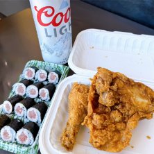 10/13の振り返り投稿④ ゴルフ終了後、コオリナステーションまで歩き ABCストアの高級バージョン Island Country Market - Ko Olina にてです。フライドチキン&鉄火巻きを テイクアウト🍗 Coors Lightは1ℓ😅(勿論シェアです) ハワイ沖はマグロの漁場なので、マグロが めちゃ美味しい😂 お米は日本のようにはいきませんが、 マグロが美味しいので 鉄火巻きも中々のものでした👍🏻