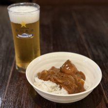 ホテルのハッピーアワーは、生ビールとハッシュドビーフが一杯無料! 本格的な味わいでマジ美味しかったです。明日の朝ごはんも楽しみ♬