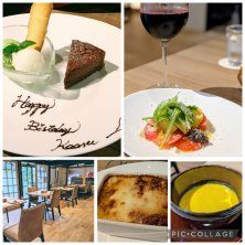 ランチコース 香取産トマトを使ったカルパッチョ、カボチャスープ、フォカッチャ、ラザーニャ、ブラウニー、コーヒー、赤ワイン(トーレ•ガラッソサンジョヴェーゼ) 夫が私の誕生日お祝いしてもらいました 150年前の古民家をリノベーションした、今年4月にオープンしたばかりのお店です