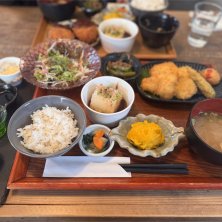 ルプロンク月替わりlunch♩ ・鱧と季節の野菜のフライ ・揚げ出し豆腐 ・かぼちゃサラダ ・生野菜のサラダ ・ピーマンとミンチの甘辛炒め ・漬物 ・味噌汁 ・ご飯 鱧をフライで食べたのは初めて😍美味しかったー😆