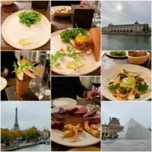 フランスごはん(パリ編) パリ散歩。この街に来るととにかくよく歩きます。 エッフェル塔を眺めながらセーヌ川沿いを歩いて、最近話題のルーブル美術館へ。 ここの中も広いからもう足が棒です… 夜はフレンチ。 パリでも牛のタルタル♡笑 フランス版はお洒落!→サラダとソースだけのお皿に→お肉やソース・溶き卵が入ったコーンを逆さまにして→ポトッと落として全部混ぜて完成! もう一品は帆立のヴィエノワーズ風。 そしてメインは鹿肉♡ 絶妙な火入れとソースとの相性も抜群! 全体的にとっても美味しかった♡