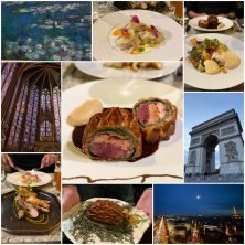 フランスごはん♡(パリ編) 朝から晴天のパリ♡ まだ人が少ない朝イチのオランジュリー美術館から。 モネの睡蓮にうっとり♡ あっちこっち見たい所がたくさん。徒歩だったり地下鉄だったりたくさん動きました♡ 夕飯前は凱旋門に登ってエッフェル塔のシャンパンフラッシュ♡半月とシャンゼリゼ通り♡ 前菜は鯛とウサギ。 メインはお魚と真鴨・フォアグラ・鰻のパイ包み。 シェアしながらいただきました♡ 美味しかったけど、店内に小さい虫がたくさんいて気分が…↓↓ 他の方、気にならないのか不思議で堪らない…