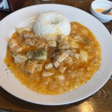 湯河原のペルー料理の人気店『荒井商店』。開店の12時ピッタリに着いたの座れましたが、10分程で満席になってました。 ランチは「鶏胸肉をほぐした黄色いシチュー」と「コロコロじゃが芋と豚肉煮込み」の2種類。 じゃが芋と豚肉煮込みは見た目と違って、案外優しい味付け、お好みで別皿の唐辛子を投入して頂きました。 コロコロじゃが芋の豚肉煮込み 1,400円