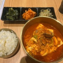 【お仕事泊まり明けに…】 ・MIXスンドゥブ(海鮮・豚肉・きのこ) ミニビビンバ付(+350円) こんにちは( ´ ▽ ` )ノ まだらん、お仕事泊まり明け、今日は寄り道 せず、まっすぐ帰り、まずは片付け👍 そして終わった頃、丁度嫁さんのパートが 終わる時間なのでお迎えに☝️と言っても徒歩5分🚶 合流し、今日オープンの 韓国居酒屋「トントンポチャ」へ(=^▽^)σ スンドゥブは辛いもの苦手なまだらんには ギリ食べれる辛さ😅更に辛くも出来るみたい💦 嫁さんはビビンバを注文してました🤗