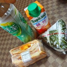 昨日、居酒屋🏮🍺の帰りに ミッチーのお店の自販機で買った ホットハムセッグサンドとおにぎり🍙 私は、ホットサンドの方頂いた🤗