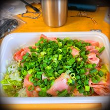 今日は在宅でランチは色々なところにキッチンカーで出店している行とのマルコ!会社の人に教えてもらったんだよね。ローストポーク弁当ご飯大盛りにネギ追加。ソースはニンニクしょうゆ。1050円也。やはりネギがいい仕事してるね!ご馳走様でした!