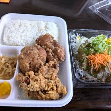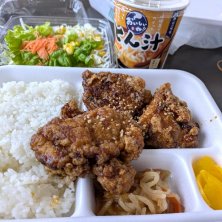 今日のお昼ごはんは、寺田商店の唐揚げ弁当。醤油味が絶妙の加減で美味しい(´∇`艸)