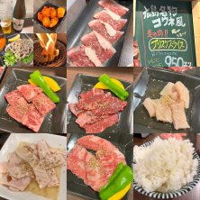 焼肉😋 らっきょうキムチ センマイ刺 ブリスケスライス 上ロース 上ハラミ ミノ コリコリ 上カルビ ライス大🍚 瓶ビール2 八重垣 11/6 夜
