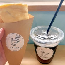 川口 600円+アイスコーヒー 380円(セットにしてくれたので50円引き) 川口の中身は(ホイップ・カスタード、キャラメルソース、クリームブリュレ)ちなみに今回は砕いたオレオも入ってましたが、メニューに記載はありませんでした! その他にJAPAN、昭和、平成、令和、埼玉と変わった名前のメニューがありますw CREPE CHUN'S @埼玉県川口市