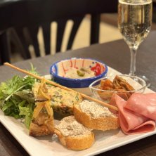 前菜盛り合わせ ・モツ煮(マダラの胃袋) ・モルタデラハム ・イワシのエスカベッシュ ・フリタータ ・トリュフ風味のマッシュルームペーストのせトースト