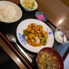 買い物の帰りにお腹ペコペコになりすぎて 中華料理屋さんに❣ 酢豚定食、夕方でもセットメニューがあるのが嬉しいな😙✨