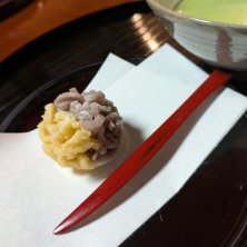 11月10日 ひがし茶屋街に行ってみました 喋りながらぶらぶら歩いてお土産を買ったりして、休憩で雰囲気の良さそうなお店へ 選べる生菓子は初霜にしました 私はお抹茶を 夫が頼んだコーヒーは豆から挽いて丁寧に淹れてくださいました それにしても外国人観光客が多くてビックリ 優しい女性店主さんも翻訳ソフトを使ってコミュニケーションとられてました
