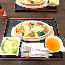 鶏肉と小松菜のグラタン/サラダ&スープ付、コーヒー ¥1,310 教室の間大丈夫だったので、ランチしました。1人体調不良でお休みだったので中止かな?と思ったけど、話したいこともあって、予定してたお店じゃなく近場で。 マカロニ茹ですぎで、コーヒーは眉間にシワが寄るほど苦く、全体的にあまり美味しくなかったのは、体調のせいかしら……。 帰宅してトイレに飛び込み(苦笑)、事なきを得ました。 晩ごはんは食べられず、今朝はトースト食べたけど、写真撮り忘れたでござる…。