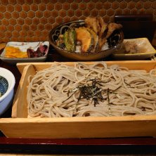 王道御膳 ミニ野菜天丼と冷そば 揚げたて天ぷらとよく締まったそば👍 これで950円(税込)は、嬉しい😘 入りにくい入口も面白い😁 提供に時間がかかるのと喫煙可が難