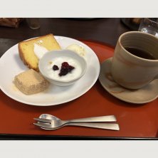 セットのデザートと紅茶(450円) わりと豪華で驚いた(レモンアイス、シフォンケーキ、わらび餅、ヨーグルト) レモンアイス?が一番美味しかった