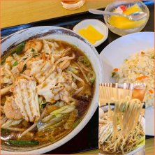2025·11·15① 🍀海老野菜黒胡椒麺セット 半チャーハン デザート 烏龍茶付き 畑から帰って、家に入ろうとしたら玄関の鍵が無い💥 休みの奥さんにTELすると、けっこう遠いとこで買物 とりあえず収獲した野菜に水を与えてこちらでランチ🍜 中国語飛び交う店内 ランチセットだけでも18種 他にも定食が12種 そしてちゃんと美味しい ストレート細麺、久しぶりですが スープがしっかり絡み旨っ!✨ お腹いっぱいなので、僕も買物に行こうっと🚙