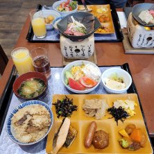 ホテルの朝食。ホテル自体は最初のホテルのほうがはるかに良かったけど、ここの朝食は美味しかったです。朴葉味噌があるのが嬉しい😃