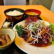 図書館の後のランチは「油淋鶏定食」800円!ごはん多いなと思ったけどペロリでした。