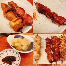 焼きとんを辛タレ、味噌タレで頂きました♪ 大根の旨煮も美味しかったです♪