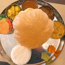 スペシャルミールス 大きな器でカレー2種 豆と冬瓜 ナスとチキン ラッサム(スープ) ポリヤルなど(野菜の副菜) サラダ(ヨーグルトに変更可) ライス プーリー(揚げパン) パパド(揚げせんべい) アチャール(ピクルス) チャトニー(ハーブの薬味) 初来店でとても期待 まずは 大好きなミールスからいただきます ୧(๑❛ั︎⌔︎❛ั︎๑)୨ ॢ♪✧✨♡ とても美味しくて プーリーおかわり!リピート決定! 次はマサラドーザ絶対食べる ♪✧✨