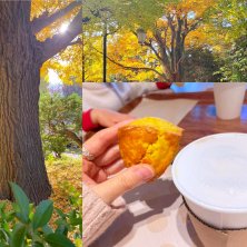 栗とかぼちゃのスコーン カフェラテ 落ち葉遊びからの🍂🍂 読書の秋😊