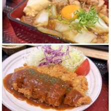 🏠チェックしがてらお昼ごはん 私はデミグラスチキンカツ定食 夫は鶏すき重? 車なのでビールはガマン🚗 ステーキ宮のあとにオープンした大戸屋 ビーチが見えるテーブルが人気のようだけど、私は奥で良い 広々気持ちの良いお店でした