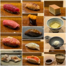 ハワイごはん♡ Part② つまみと握り、交互に出してもらうスタイル酒飲みには嬉しい♡ここから本格的に握り。 赤身漬け、中トロ、名物おはぎはトロと沢庵、マウイオニオンの刻みが混ざっており、上にはマカデミアンナッツ。 のどぐろ焼きにはフィンガーライム。プチプチ酸っぱいけど脂っぽいのどぐろにピッタリ。 ボストンのホタテ握りは甘ダレとハワイ島のオレンジを。雲丹、初めて食べた銀鱈の握りは穴子みたい。 リクエストでサヨリと金目鯛。 玉子、だし巻き玉子入りのスープ、塩アイス、葛切り… 大満足♡