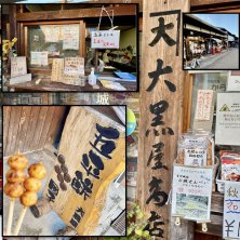 🟠大黒屋 岩村城下町の五平餅がやっぱり食べたくて 帰りに再度 寄りました (行きに寄った時には開いてなかった) 団子型の五平餅 ー●●● 1本120円 食べやすくて調度の量でした
