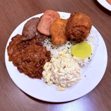 今日は午前中アロハスタジアムのスワップミートを皮切りに島内アンティークショップ巡りなどで都合20kmも歩いてしまった 夕食はZippy’s の Zip Pac Deluxe! スパムにビーフ、フライにチリ…安定の美味しさで、結局いつもこれに戻ってくる定番プレート。 そして一皿 1350カロリー。 量もしっかりで「今日は全部いけるか…?」と思いながらも、気付けばほぼ完食。 消費カロリーよりも摂取カロリーの方が多い説😅 ご馳走様😋 ローカル感も味も、やっぱりいいなぁ😌