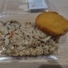 岡崎アウトレットに来ました お店も2時間待ち、フードコートも長蛇の列で結局軽く食べて、後でお茶しようってことになった これはお肉の専門店石川屋のとりめしとコロッケ