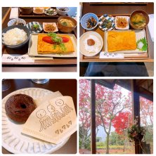 京都2日目の朝食です。 だし巻き卵、卵にこだわってる。 お豆腐入り山椒チョコドーナツ。 揚げたてで美味しい😋