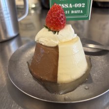 下北沢の『KISSA 092』、マーブルプリンが気になって訪問してみました。チョコとミルクの二つのプリンを半分にカットして、一つに合体したプリン、甘くて美味しいです。 マーブルプリン 850円 ドリップコーヒー 750円