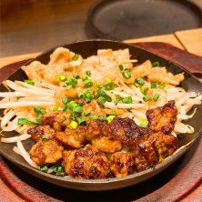 もつ焼き こちらのお店、目の前の鉄板で様々な食材の鉄板焼きを熱々でいただけます! もつ焼きは、タレと味噌の2つを味わえて、一粒で2度美味しいやつ♪ ほかに、山芋を使ったとろっふわっのお好み焼きも美味しくてお薦めです