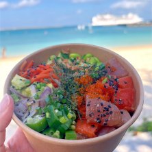 MIXポキ丼買ってパイナガマビーチで職場(MSC Bellissima)眺めながらブランチ。 なんて贅沢なんでしょ。