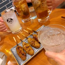 ✄------- 11/29土曜日の女子会② -------✄ お通しがつくね😍 はじめましてのお店でした ほとんどSNSをやらない今どき珍しい仲間たち 一軒目のお刺身盛り合わせを ちょっと待ってと撮るのがやっと🤣笑 なので二軒目も写真がほぼない ビールを飲んだあと何を飲もうかいつも悩むけど 甲類焼酎はやめていて、乙類かあれば泡盛 とりあえず二軒目までは泡盛がメニューにあり🙆♀️ そしてロックはやめて何かで割ることを覚えました みんなには遅すぎると笑われましたけど😛