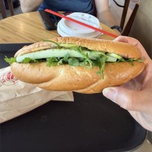 ベトナムのメジャーカフェチェーン Highlands Coffeeのバインミー。パンがしっかり美味しくて、具材もパクチーもバランス良く美味!