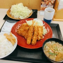 お昼ごはーん(*´∇`*) 海老チキンから揚げ定食 いただく(๑˃̵ᴗ˂̵) 野菜はたくさん食べる派なので今日も千切りキャベツ追加します🥬