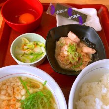 初めてのなか卯に後輩と来店。 こだわり卵の鶏小鉢朝食 うどん変更をいただきました。満足(^^)