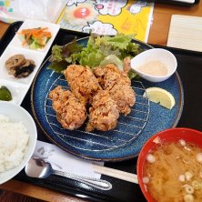 数ヶ月前に出来て気になっていた 定食屋さんに初訪問🔰 初訪のお店ではだいたい 唐揚げ定食一択です☝️ 下味がたっぷり染み込んでいて 多分二度揚げしているであろう ガリガリ系。 めっちゃ好み💓 副菜と具沢山の味噌汁、 最後にミニデザート付き。 大満足の定食でした😋 再訪確定!! 次回はお薦めの アジフライにするつもり😆