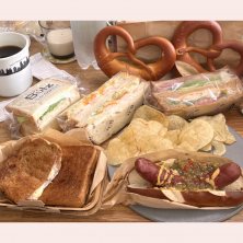 今日はブッツ! プレッツェルロールのホットドッグ🌭は和牛ソーセージ(選べる)ポテチ付きってのが嬉しかったり✨ あとはハムチーズのホットサンド エビ玉ブロッコリーサンドとか ローストポークとチキンのサンドとか プレッツェル🥨とか