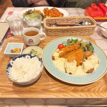 ミックスフライ定食。 エビフライは次女、チキン南蛮は長女のお腹へ。(笑)